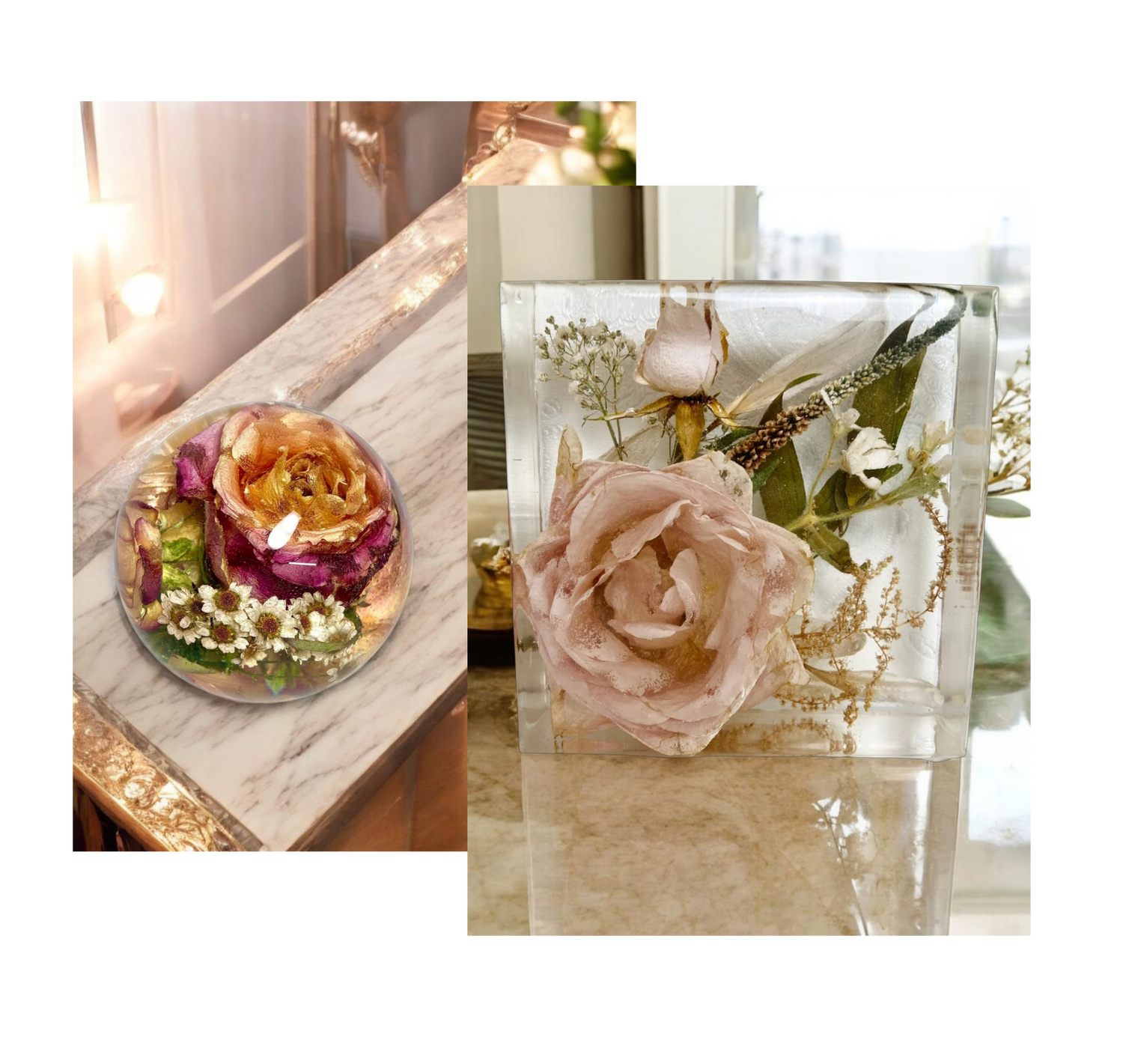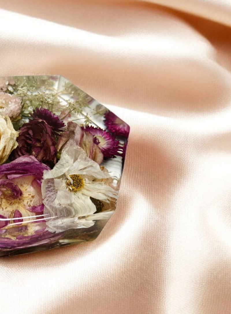 Discover timeless keepsakes handcrafted with care. Choose from our elegant coasters, framed floral art, and unique paperweights to preserve your precious memories.