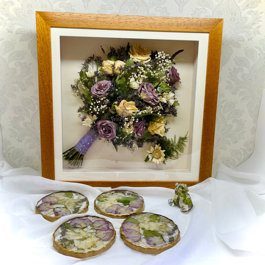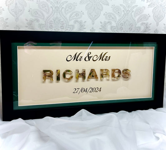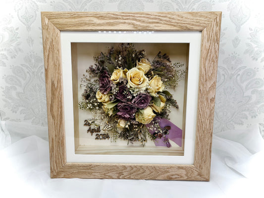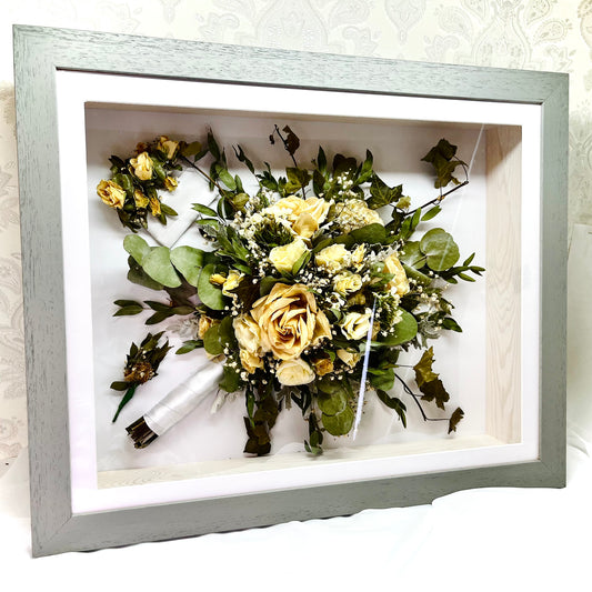 Beautiful frames to display your preserved bouquet or wedding flowers they can be hung in your space and look amazing in any room!
