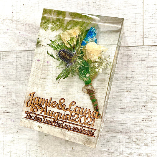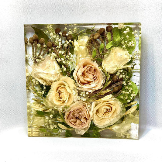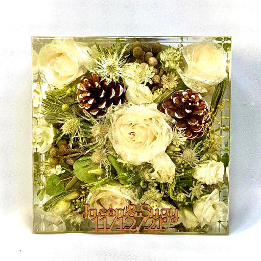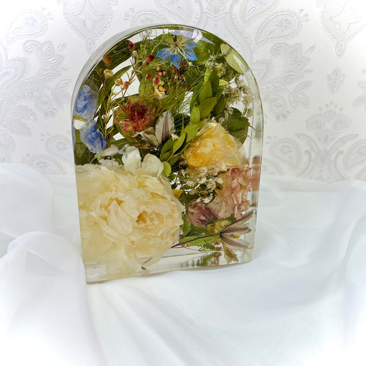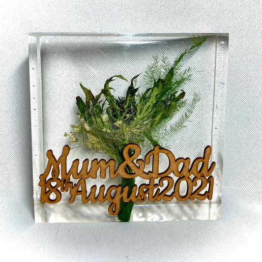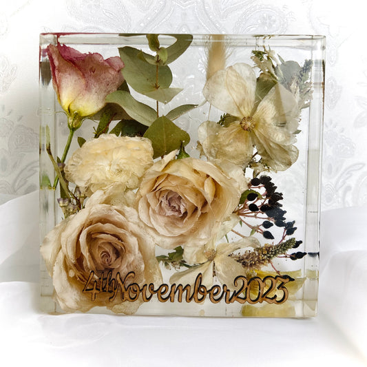 Wedding and funeral flowers preserved into freestanding display blocks and freestanding letters to display most of your flowers.