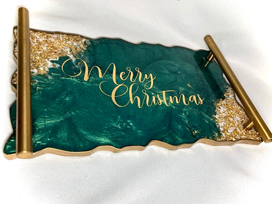 Emerald and gold festive decorative tray