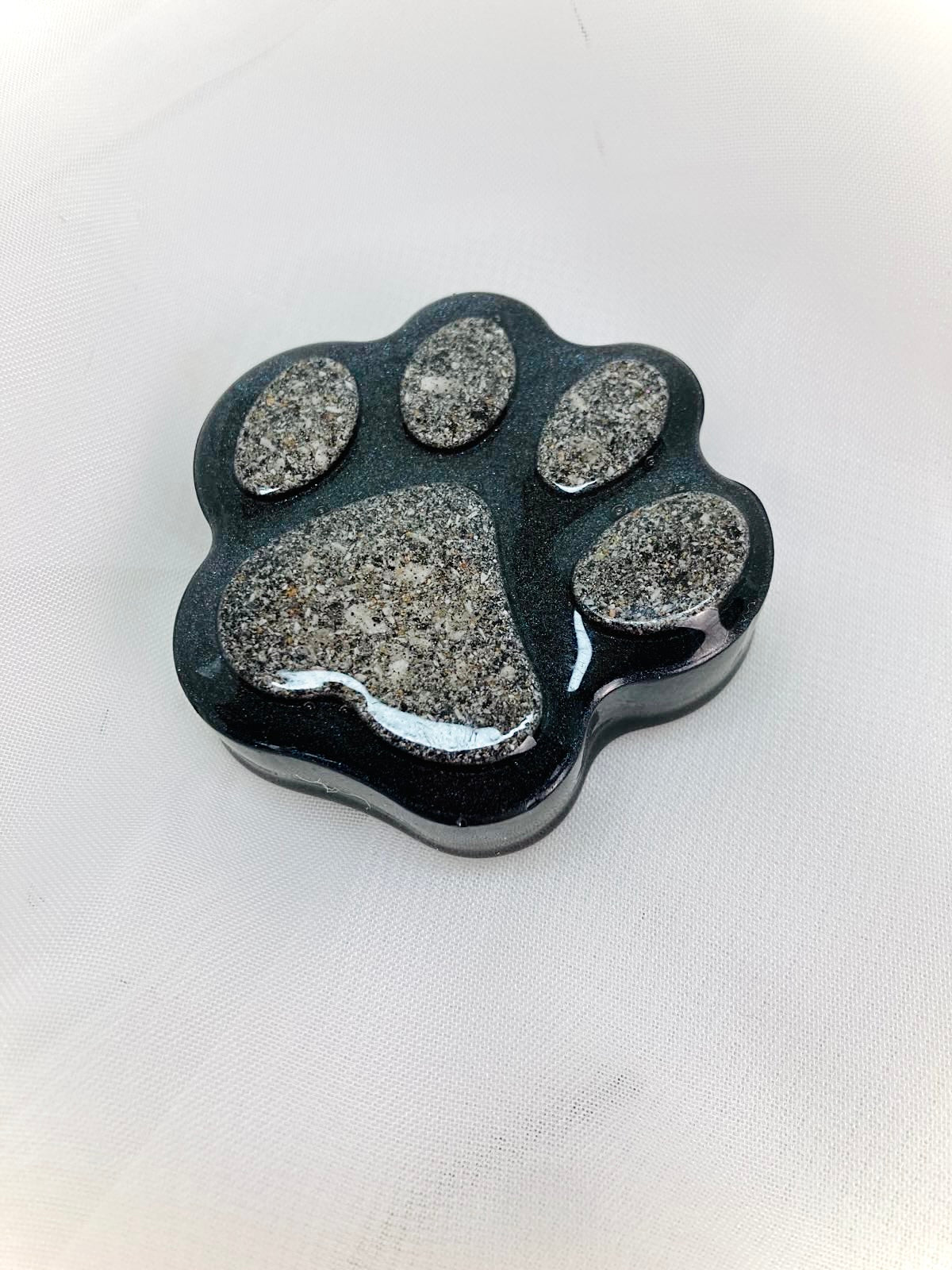 Honor the memory of your beloved pet with our Cremation Paw Keepsake, lovingly handcrafted to hold cremation ashes. These 5cm resin paw prints, 2cm deep, are a beautiful way to keep your pet close, offering comfort and a lasting tribute.