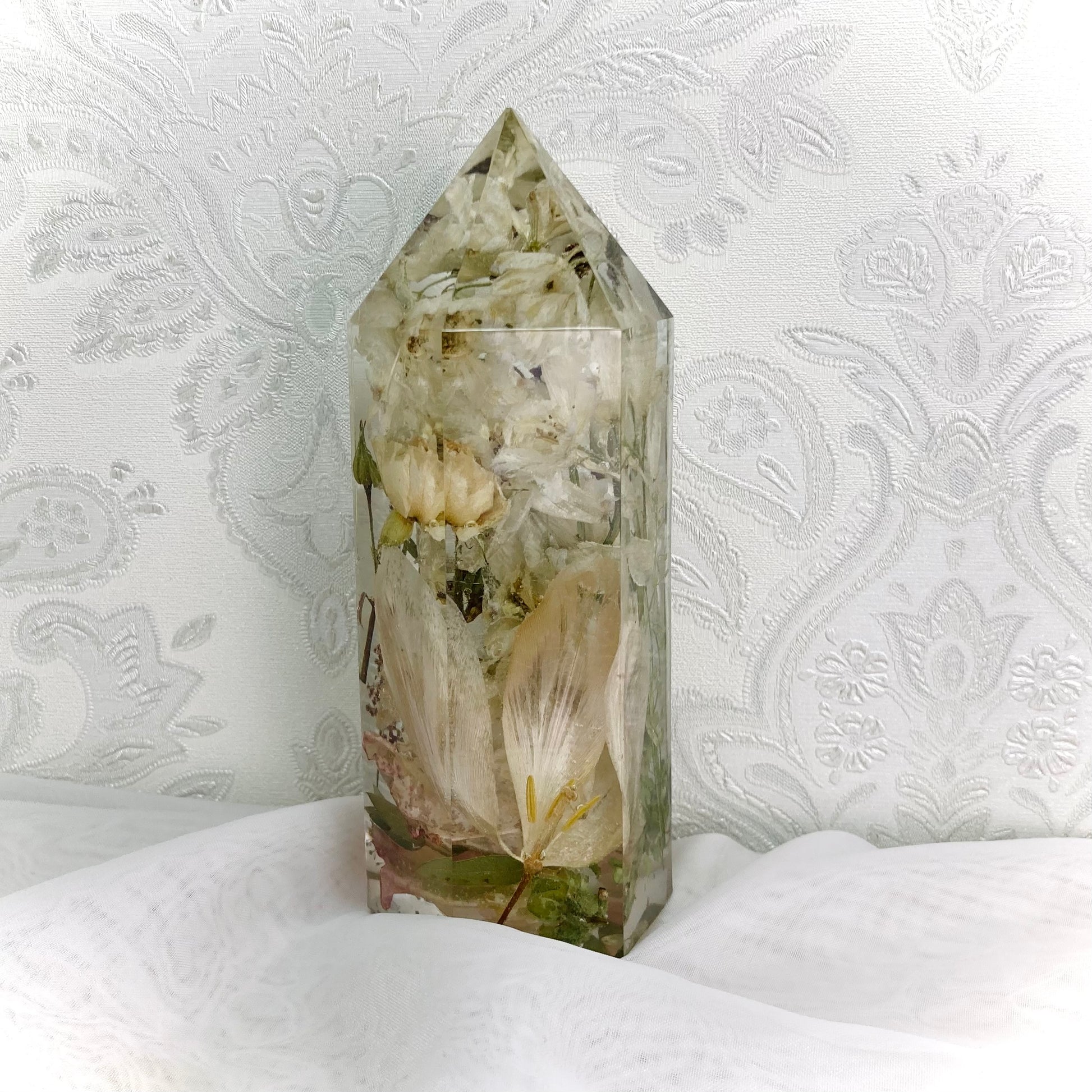 A beautiful 14cm faceted crystal containing your own preserved funeral or wedding flowers.