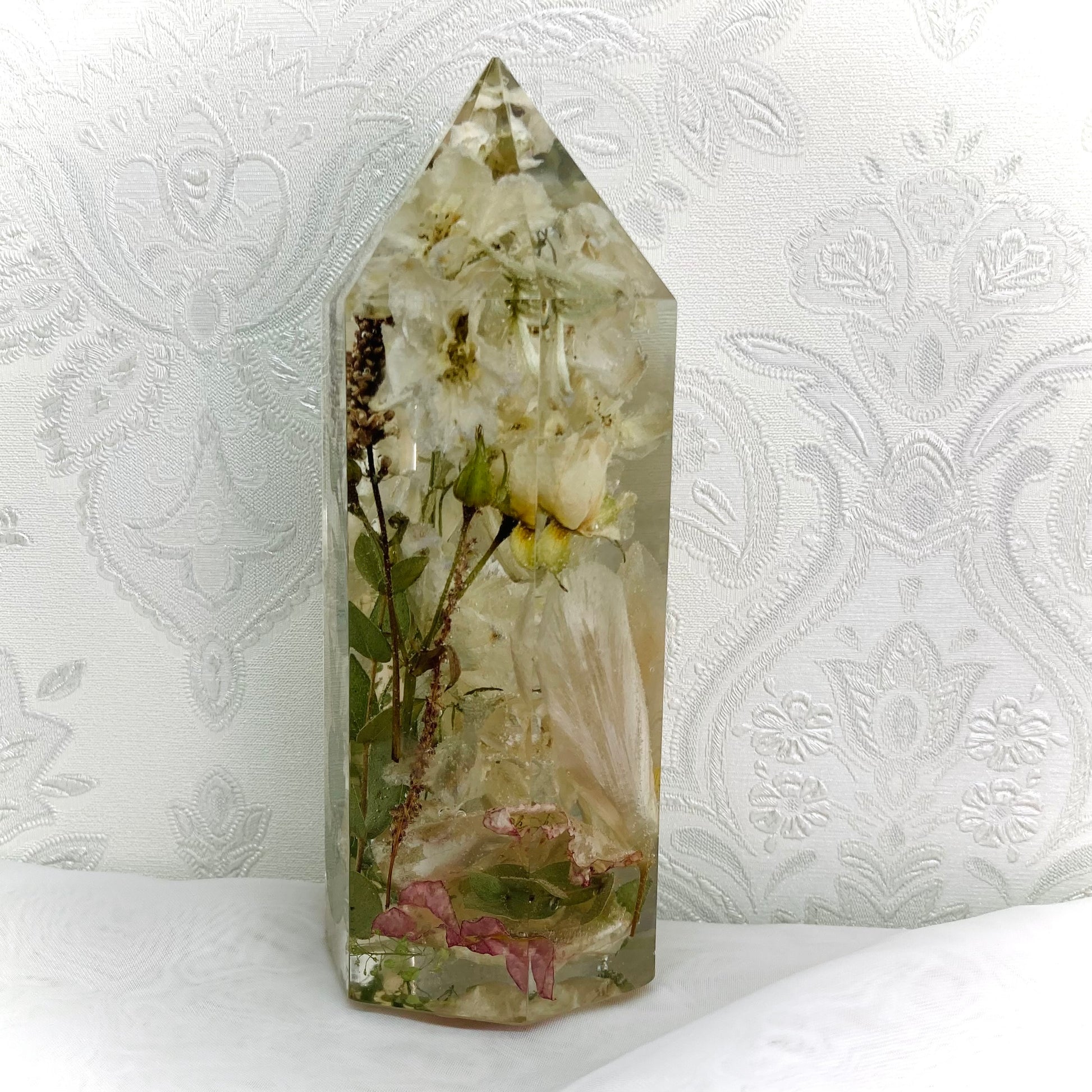 A beautiful 15.5cm faceted crystal containing your own preserved funeral or wedding flowers.