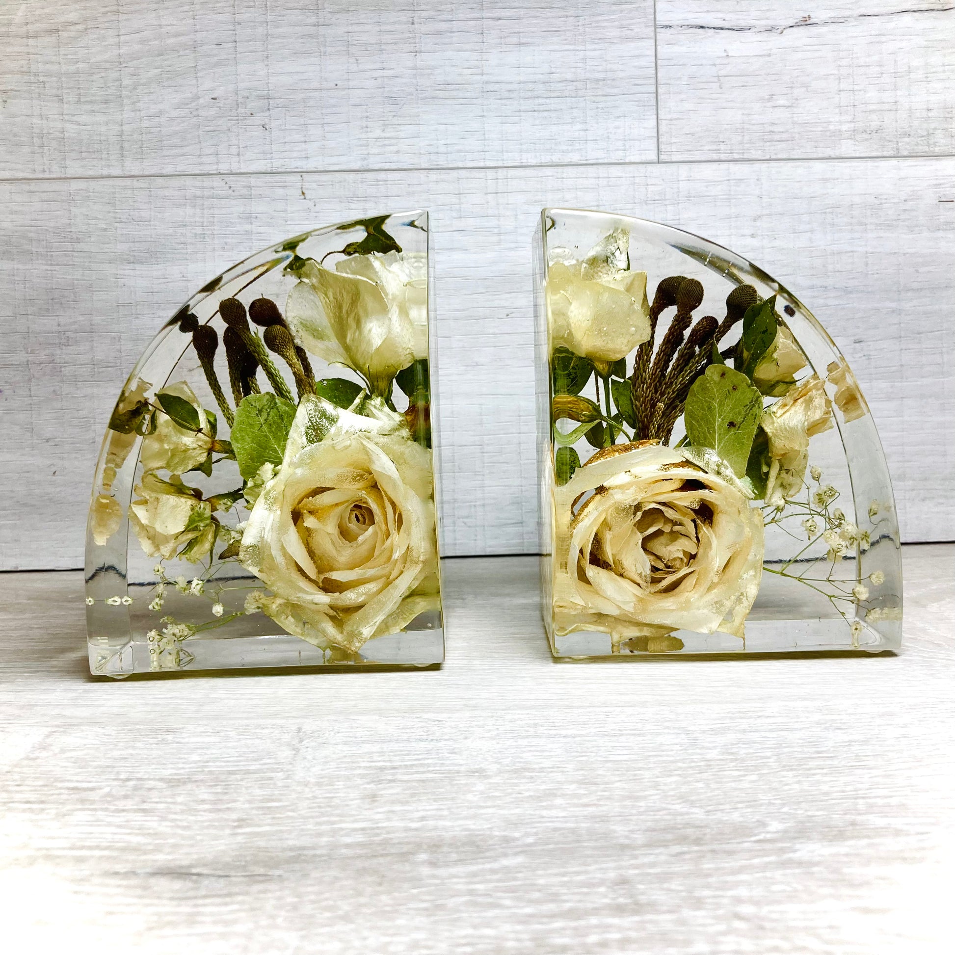 Pair of floral bookends containing your wedding flowers or memorial flowers,