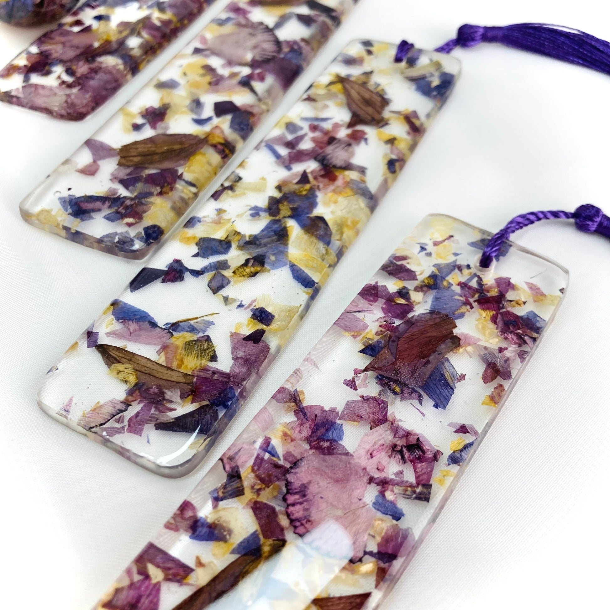This bookmark is suitable for tiny flowers and pieces of petals. They are deeper than a standard bookmark, this is to allow enough space to preserve the petals.