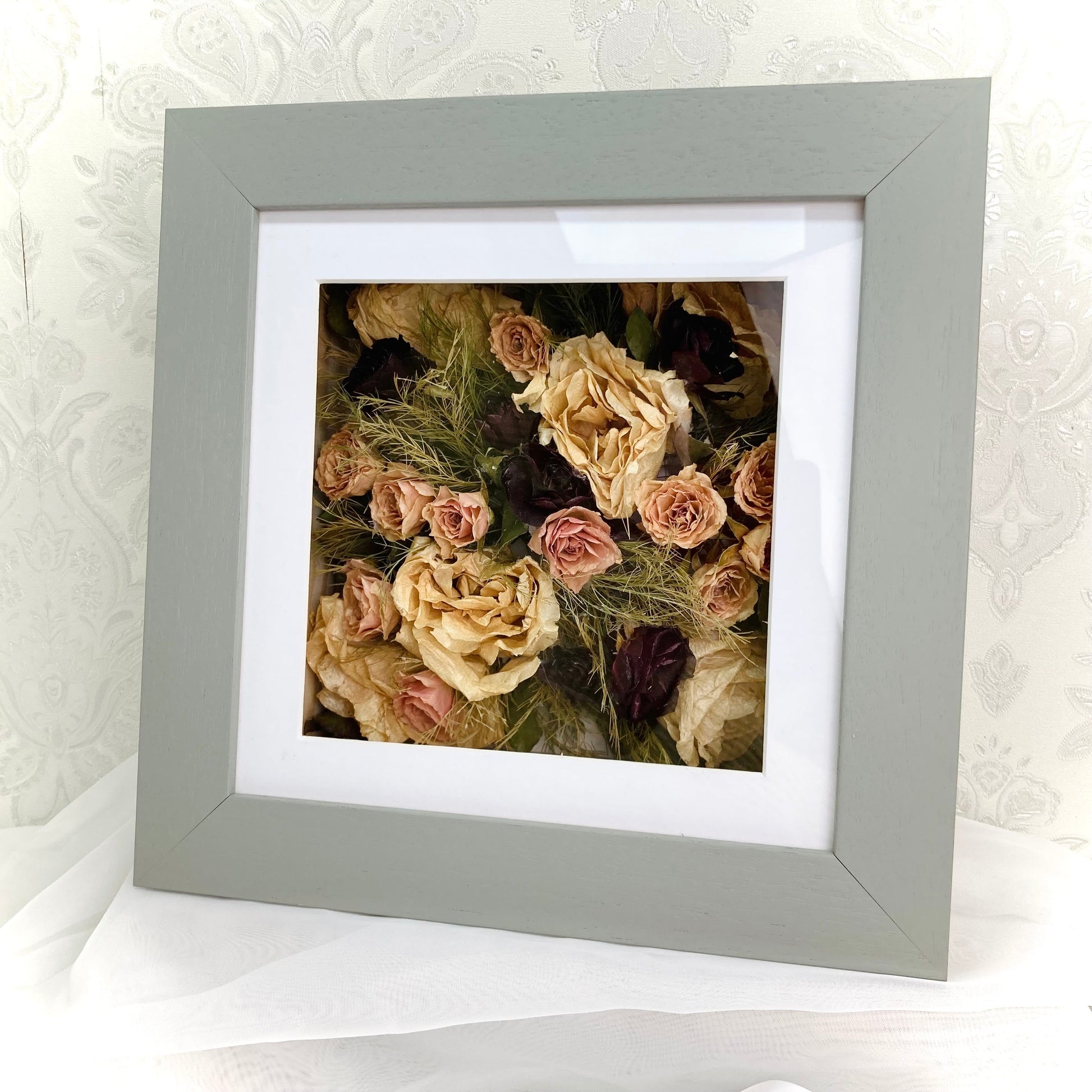 Larger frames are available and can be suitable for a miniature version of your bouquet or larger can display a full bouquet.