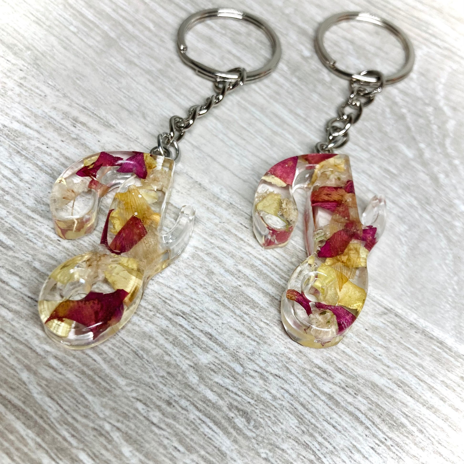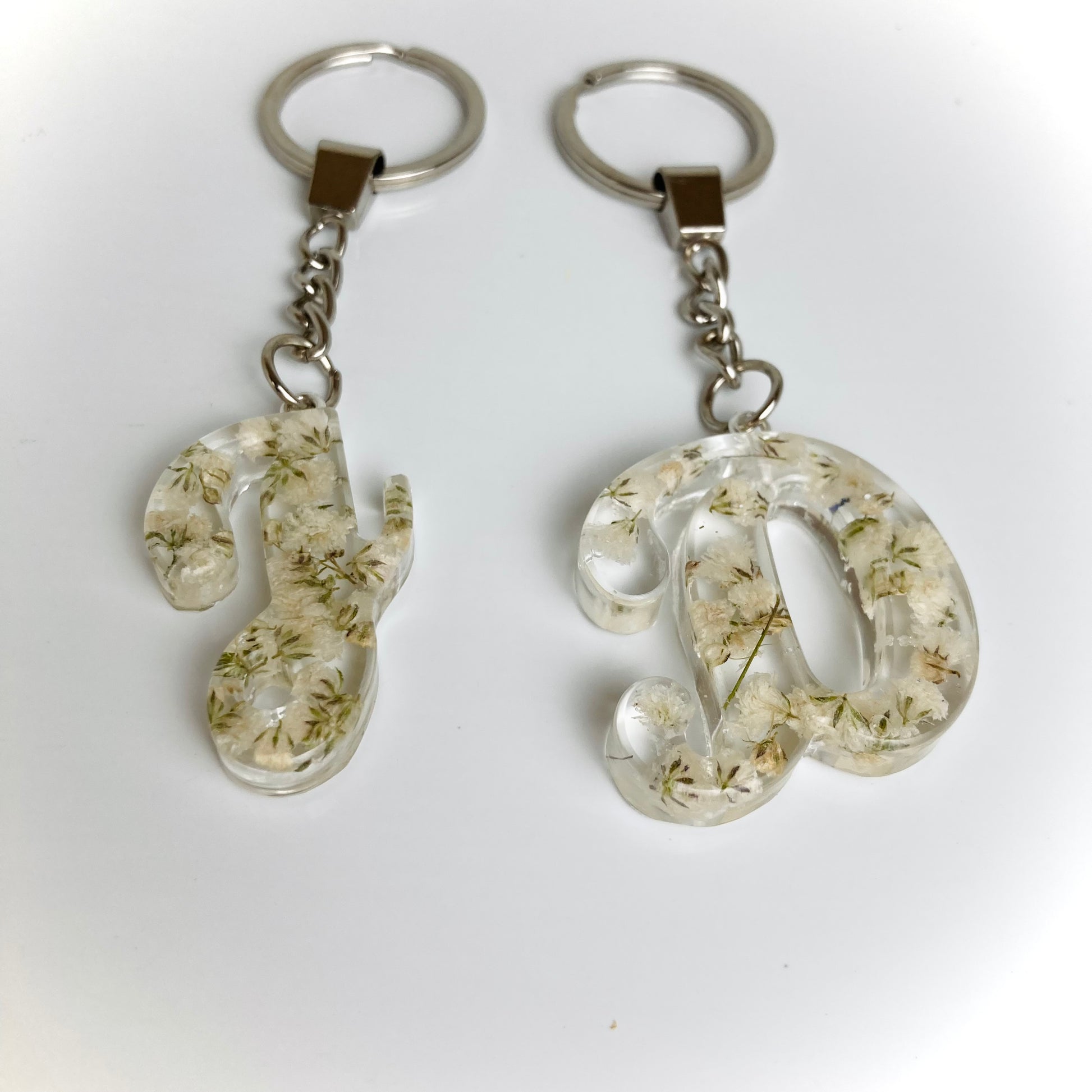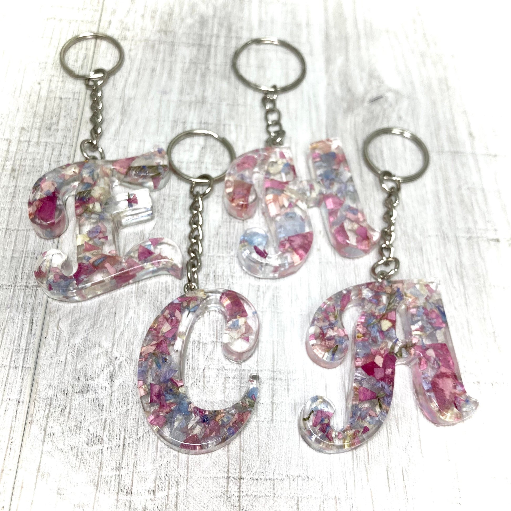 A beautiful 5cm letter keyring containing your own real dried flowers and foliage.