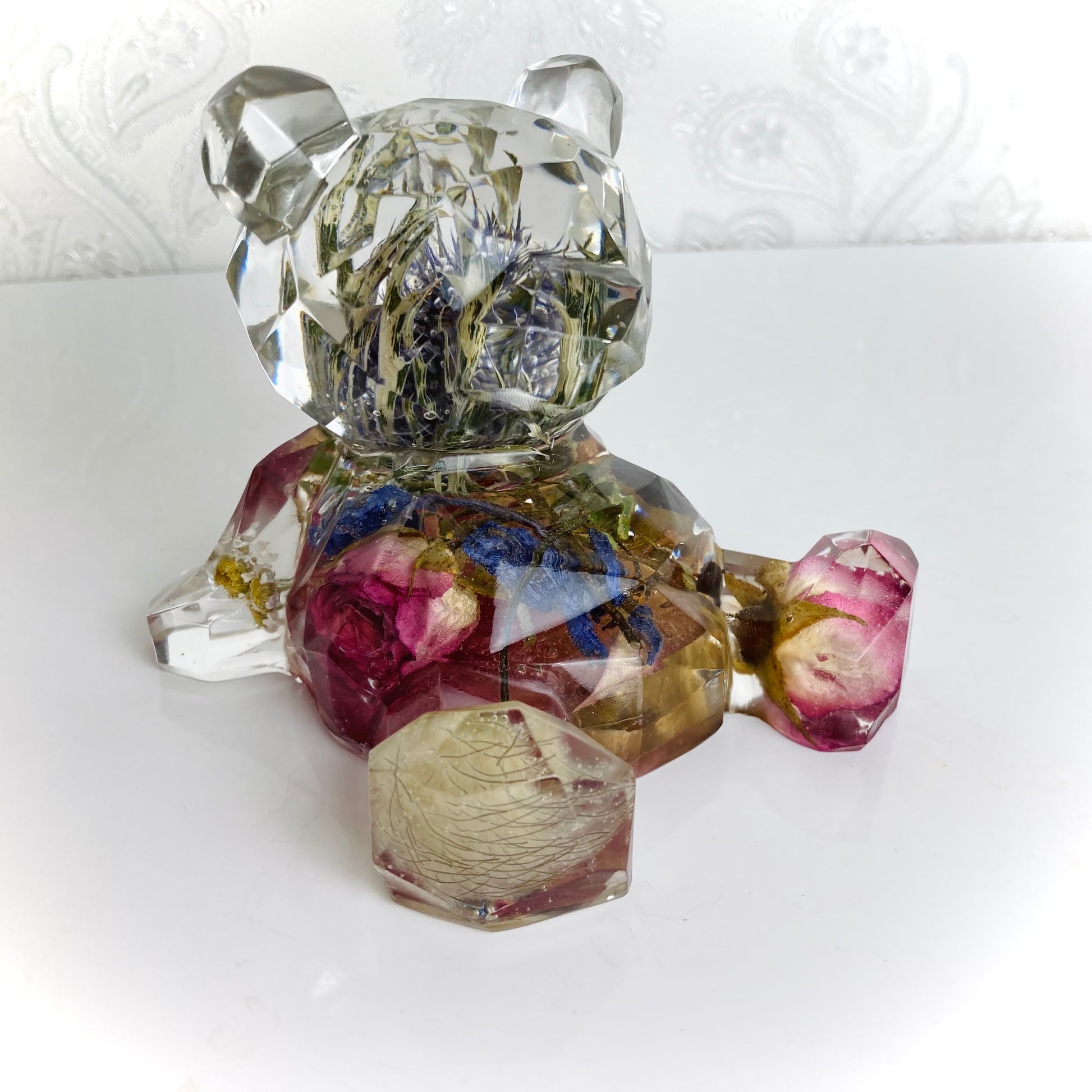 A beautiful faceted bear decoration to contain your own preserved funeral or wedding flowers.