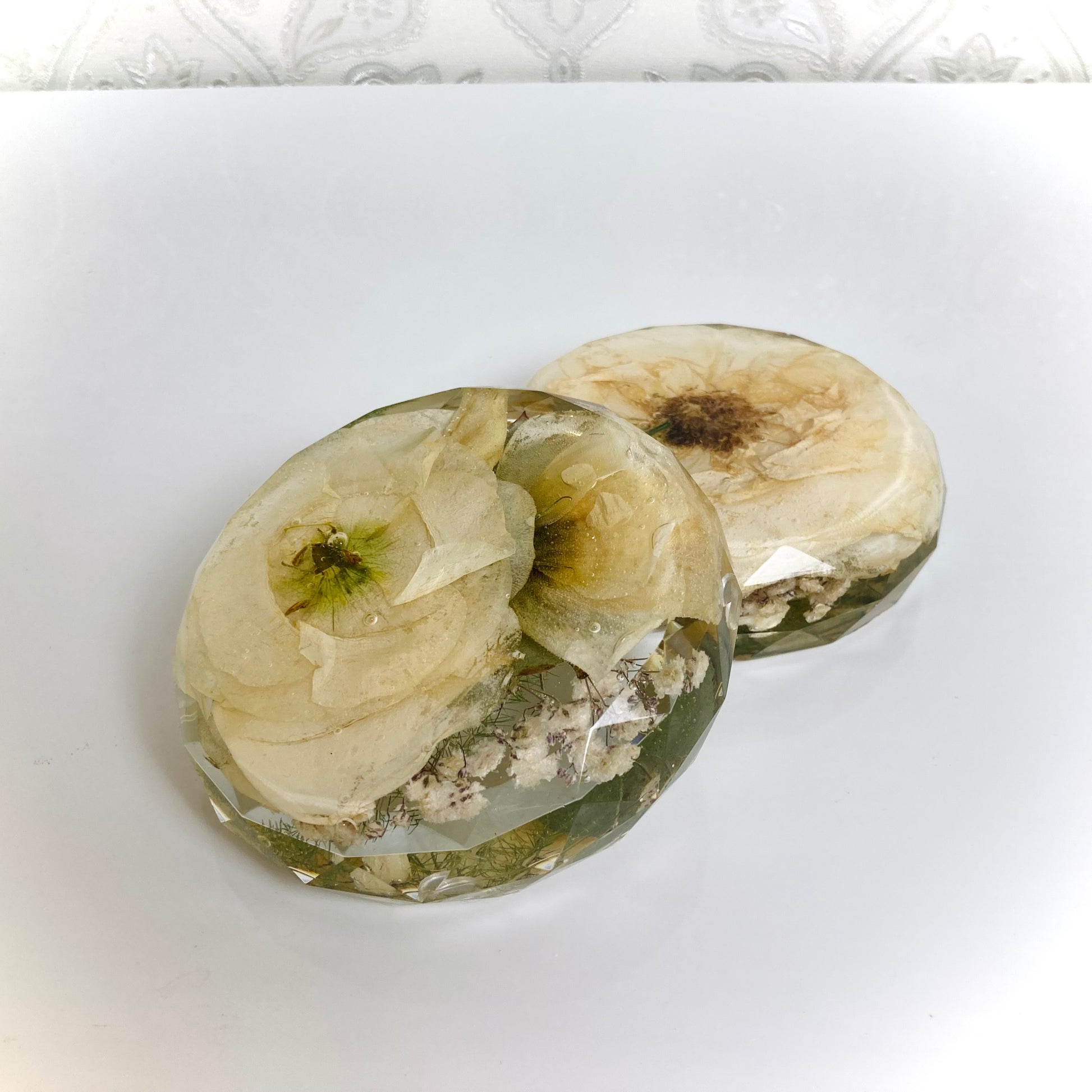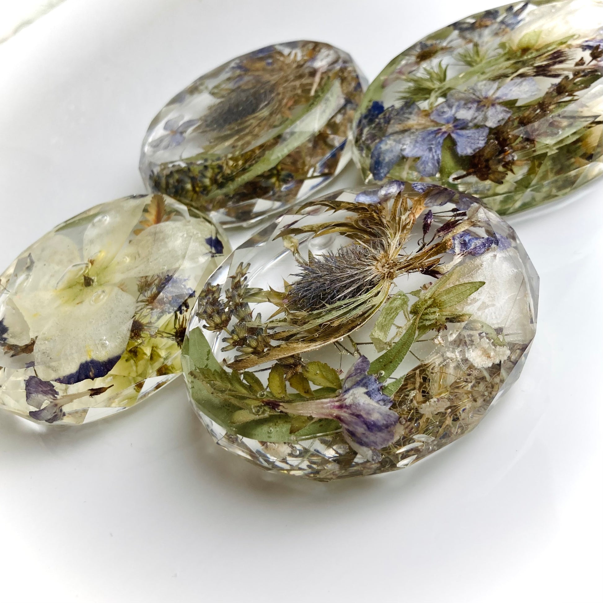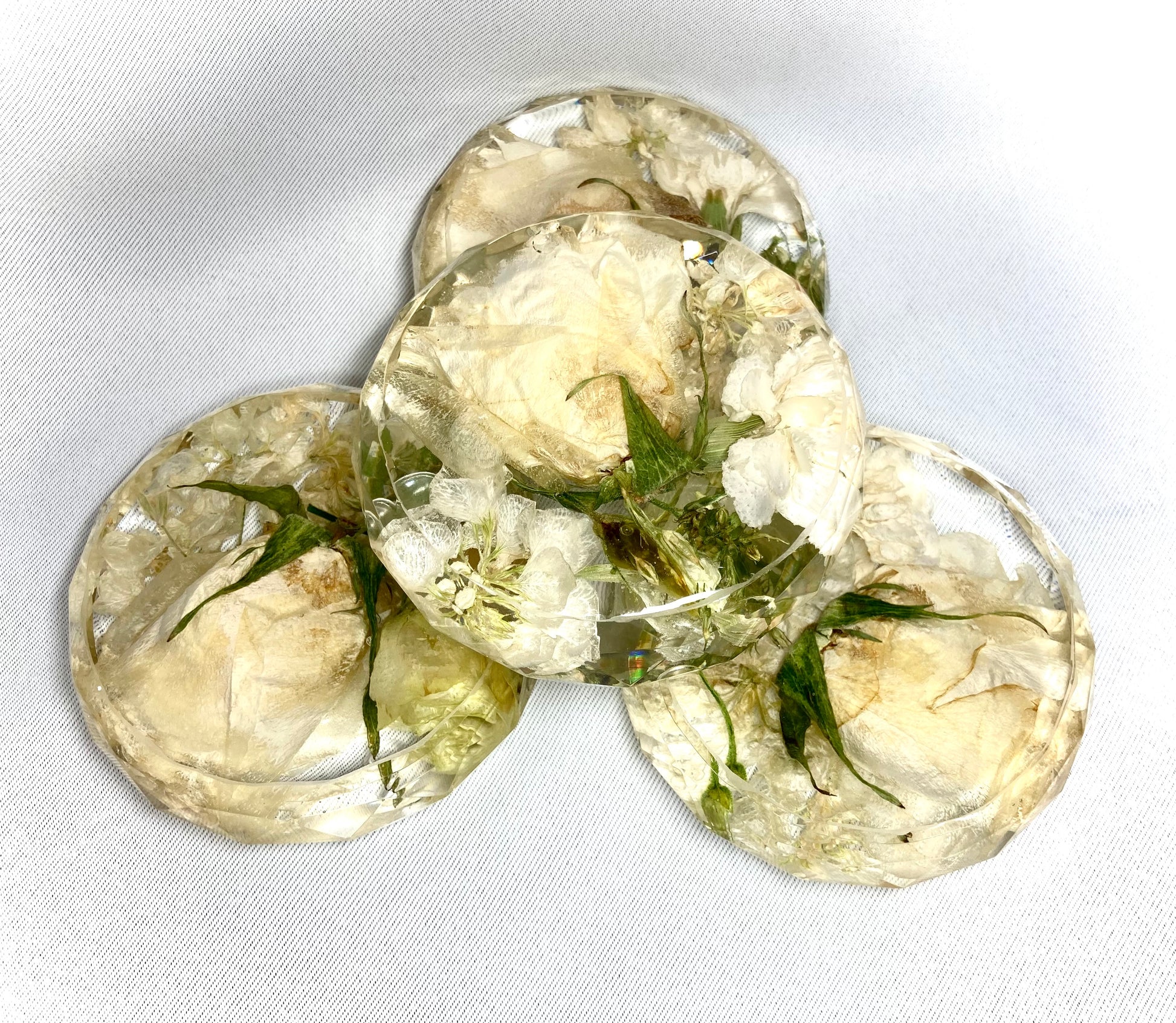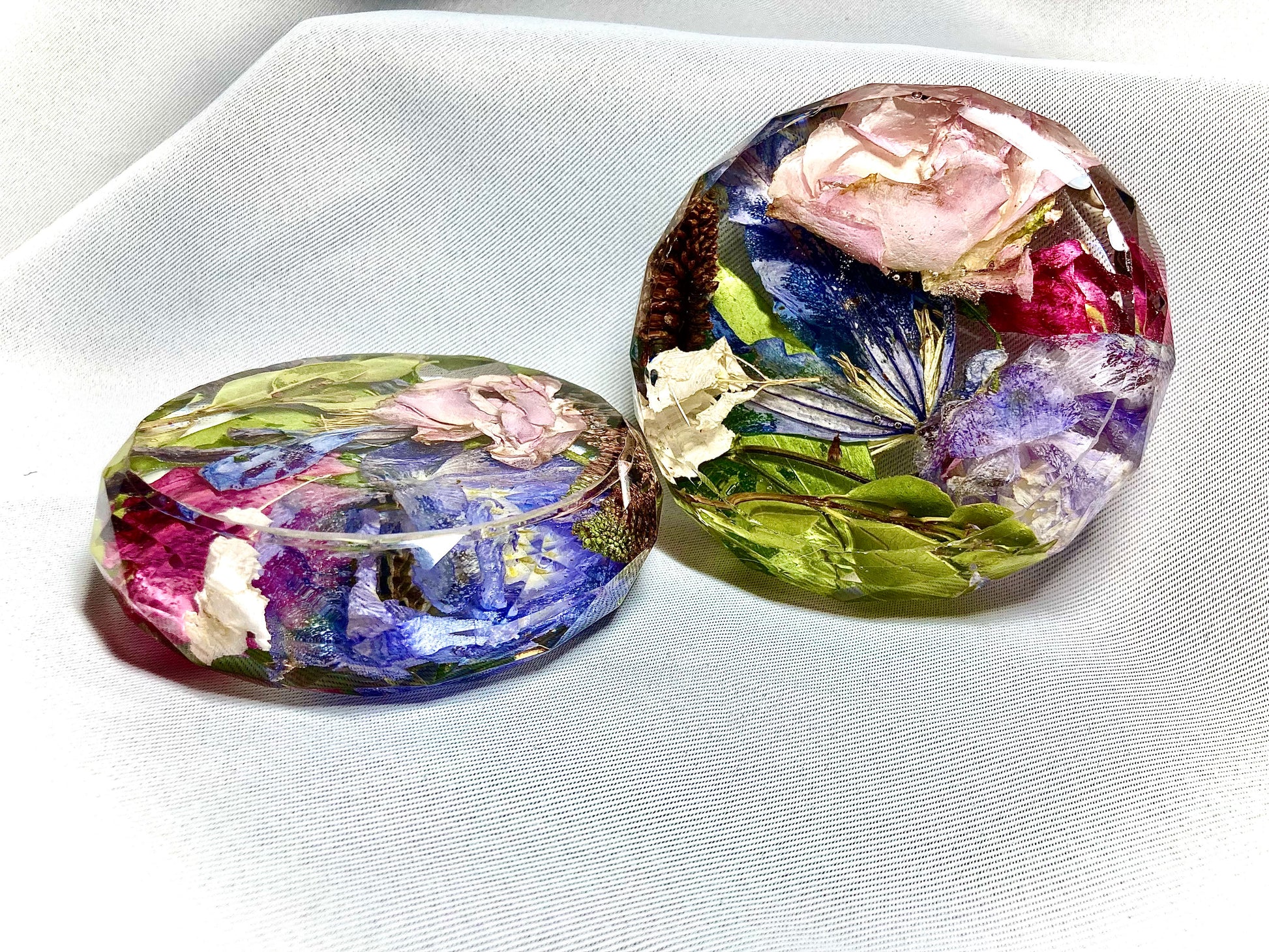 A beautiful 10cm faceted heat resistant drinks coaster containing your own preserved dried and foliage.