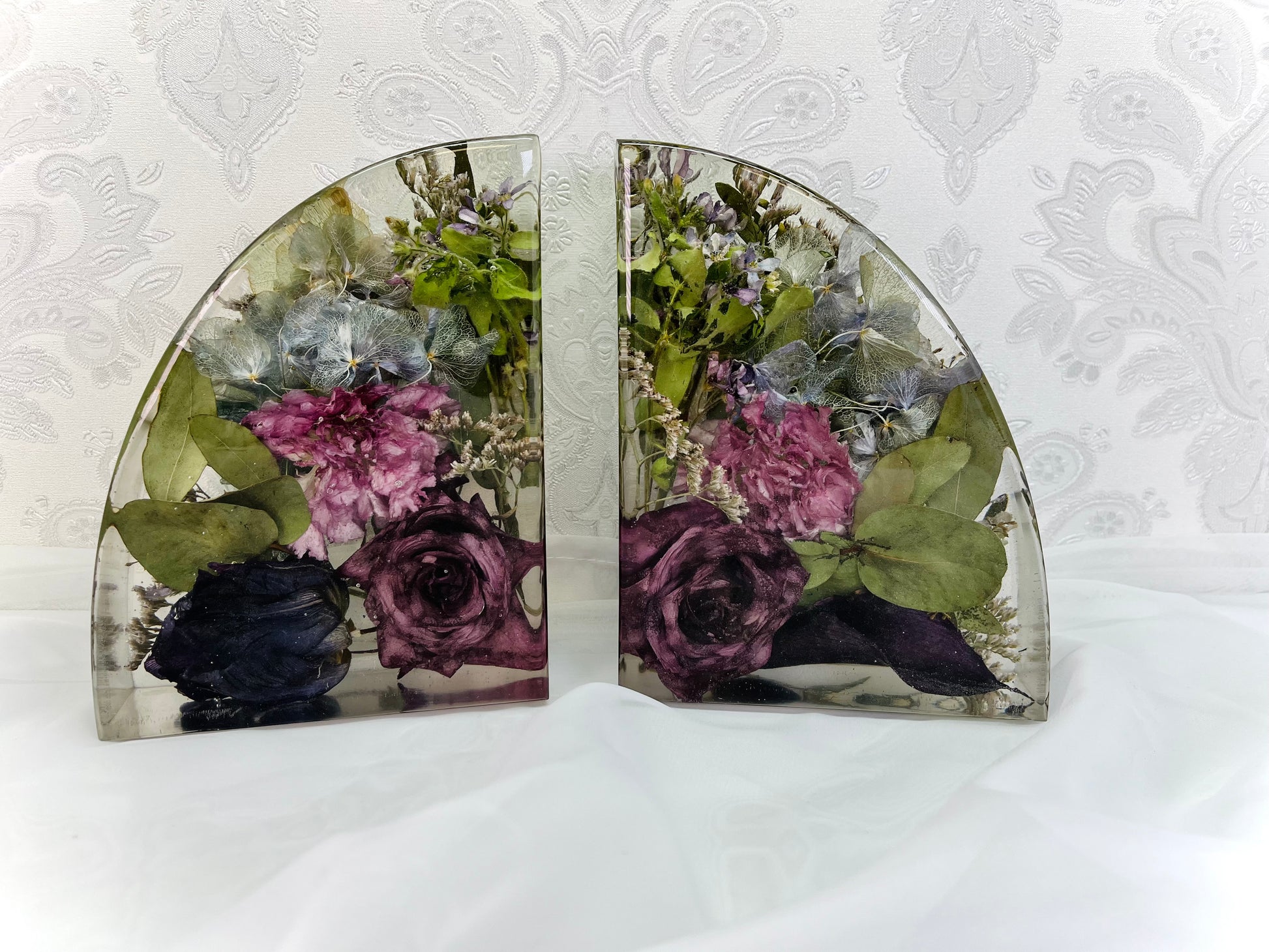Pair of floral bookends containing your wedding flowers or memorial flowers,
