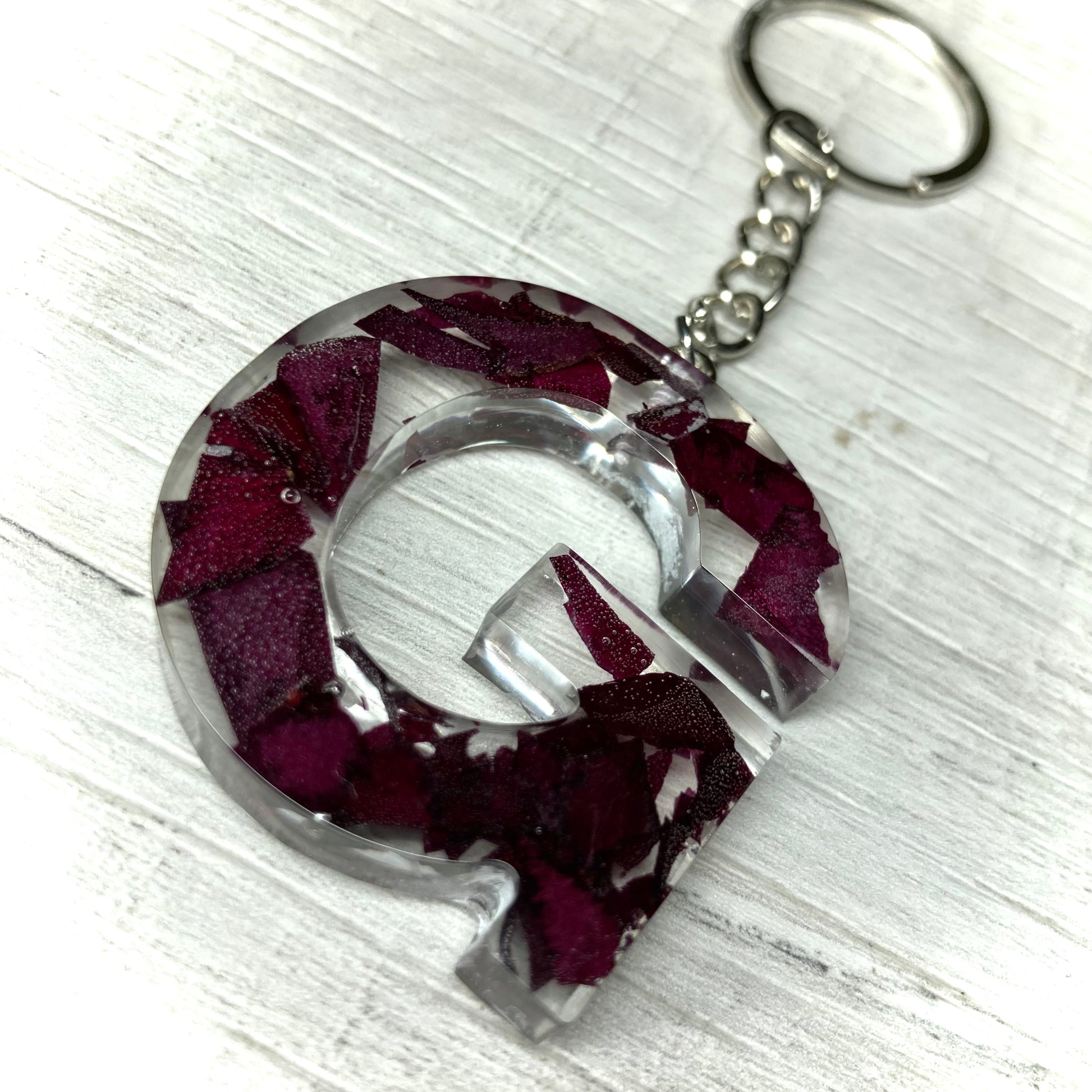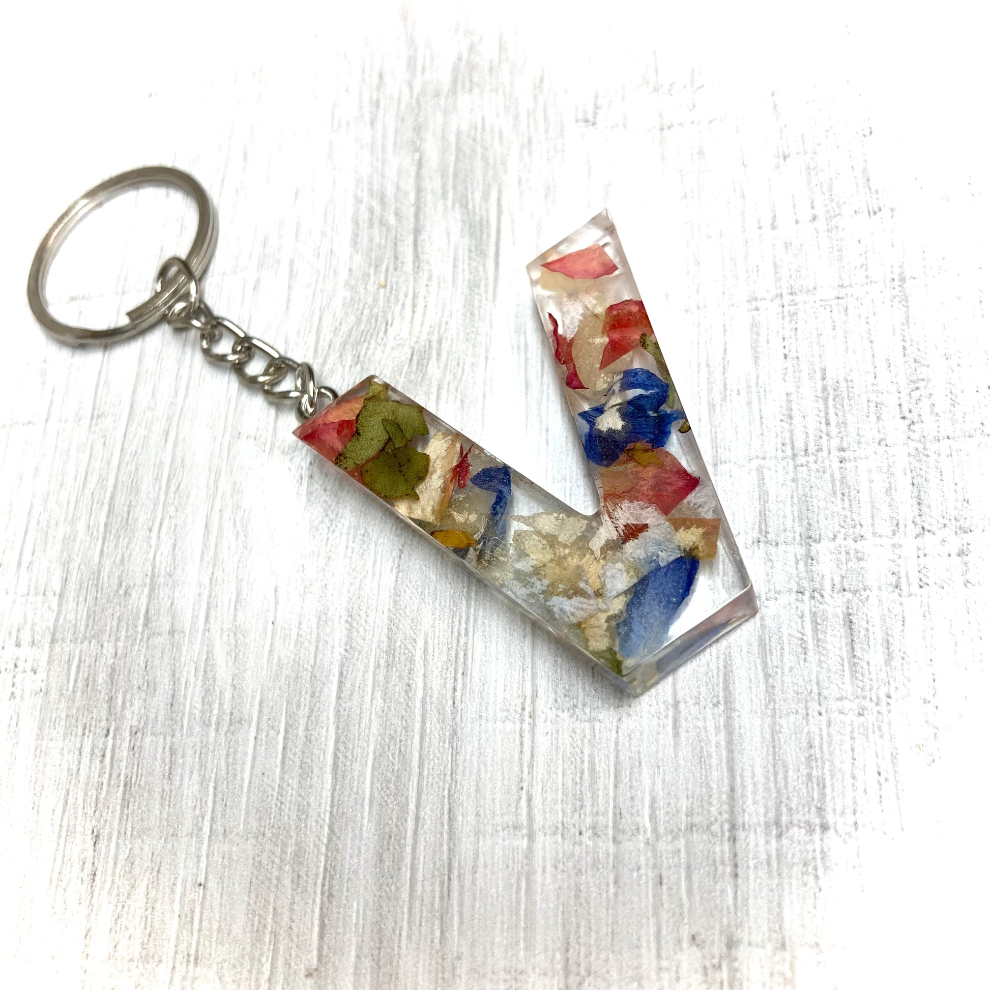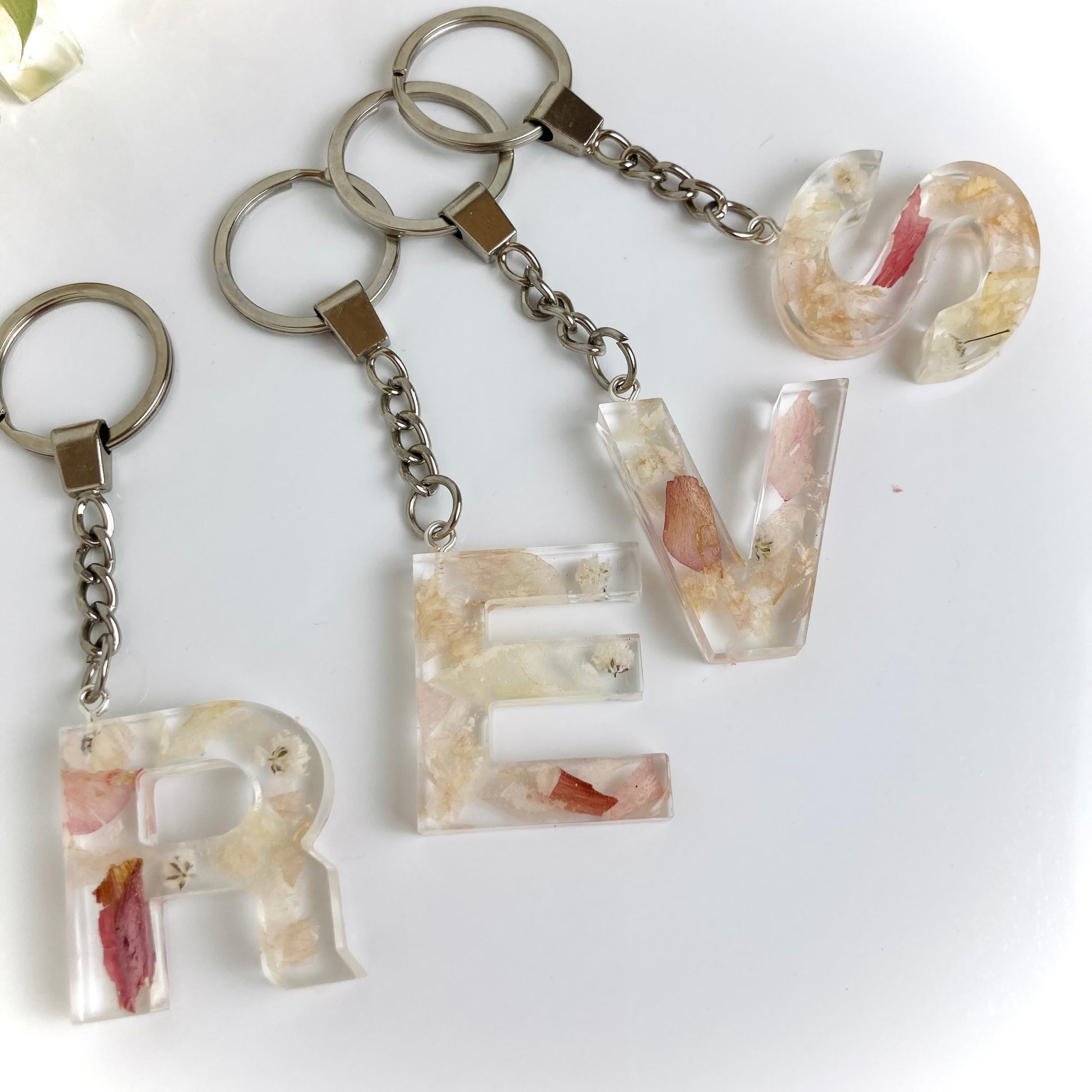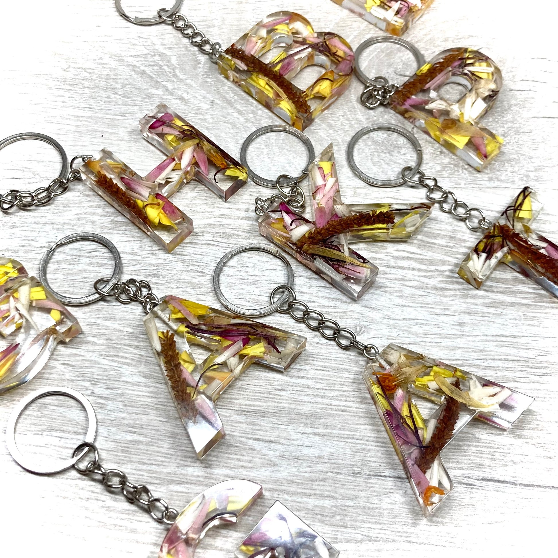 A beautiful 5cm initial keyring containing your own real dried flowers and foliage.