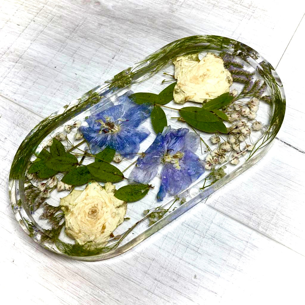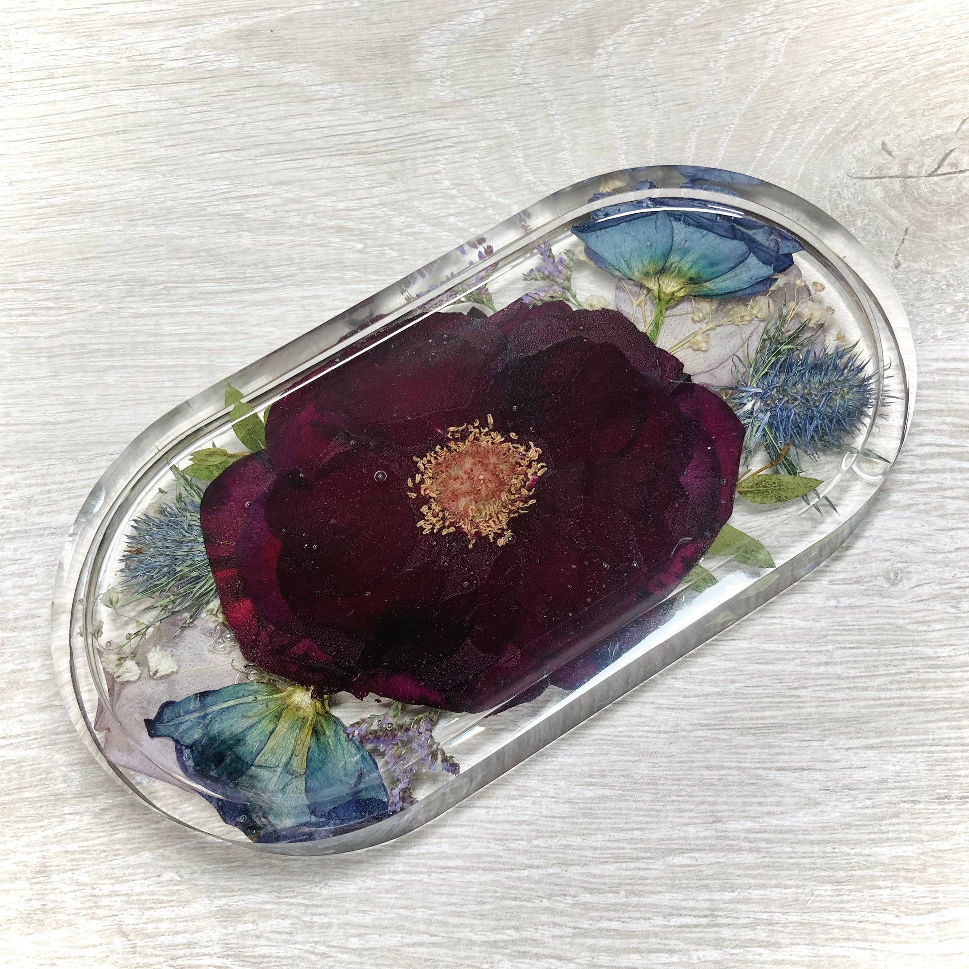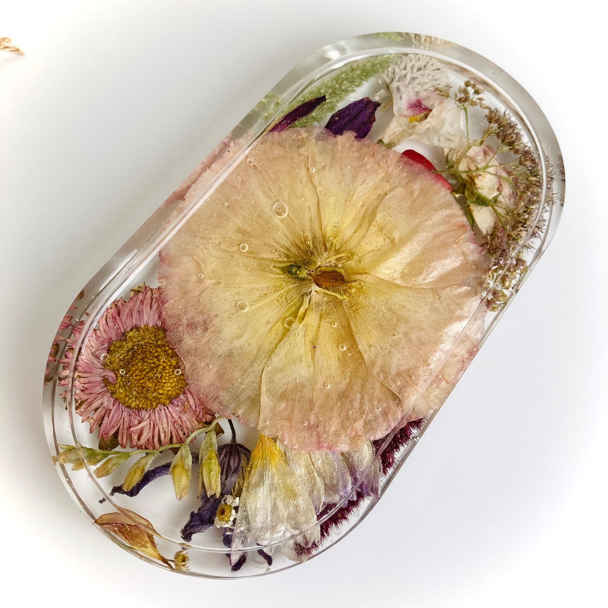 Our process starts with hand-picking the freshest flowers from your wedding bouquet and preserving them using a special technique to ensure their beauty and vibrant colours are maintained for years to come. The flowers are then arranged and carefully placed inside the oval-shaped tray, creating a stunning display that is sure to become a cherished keepsake.