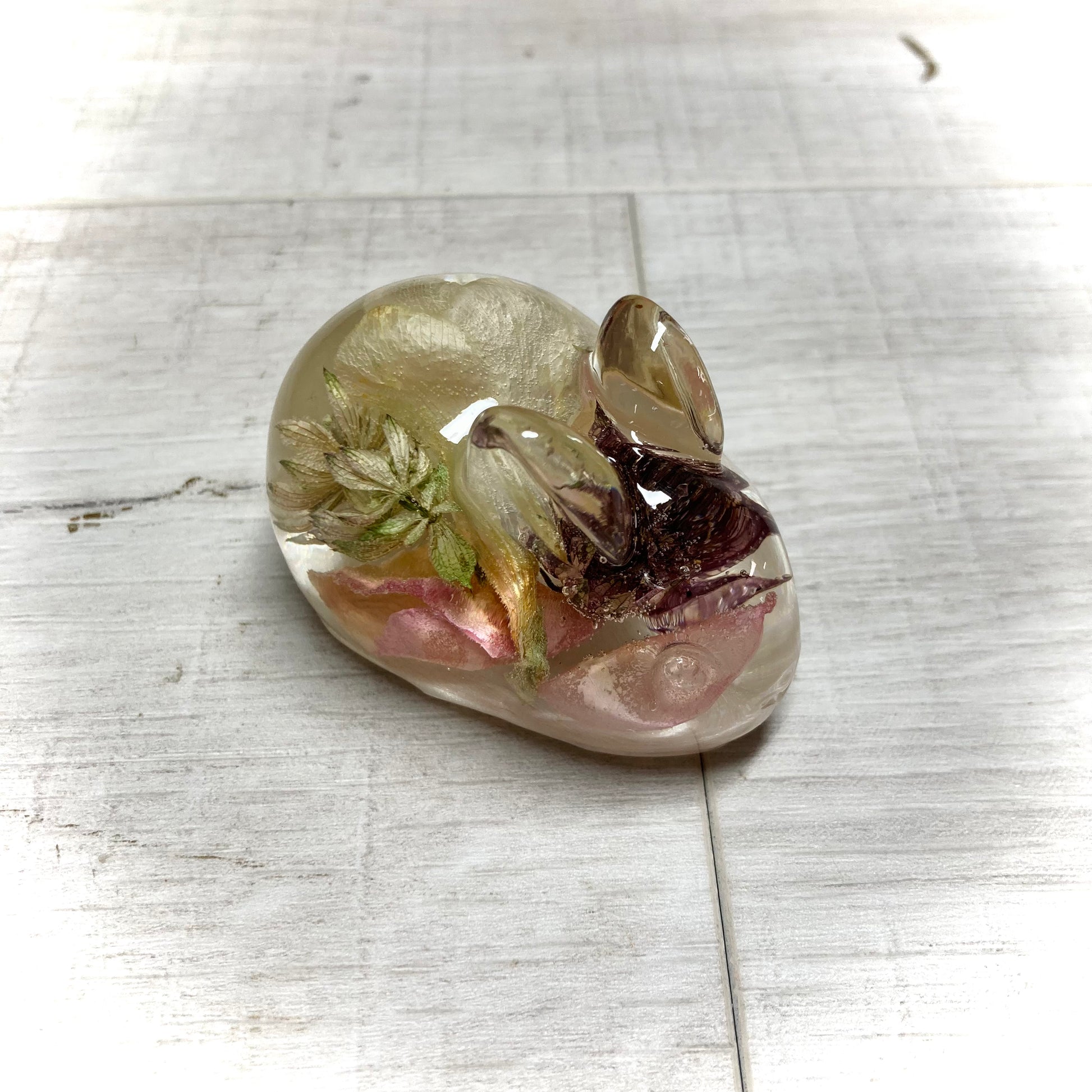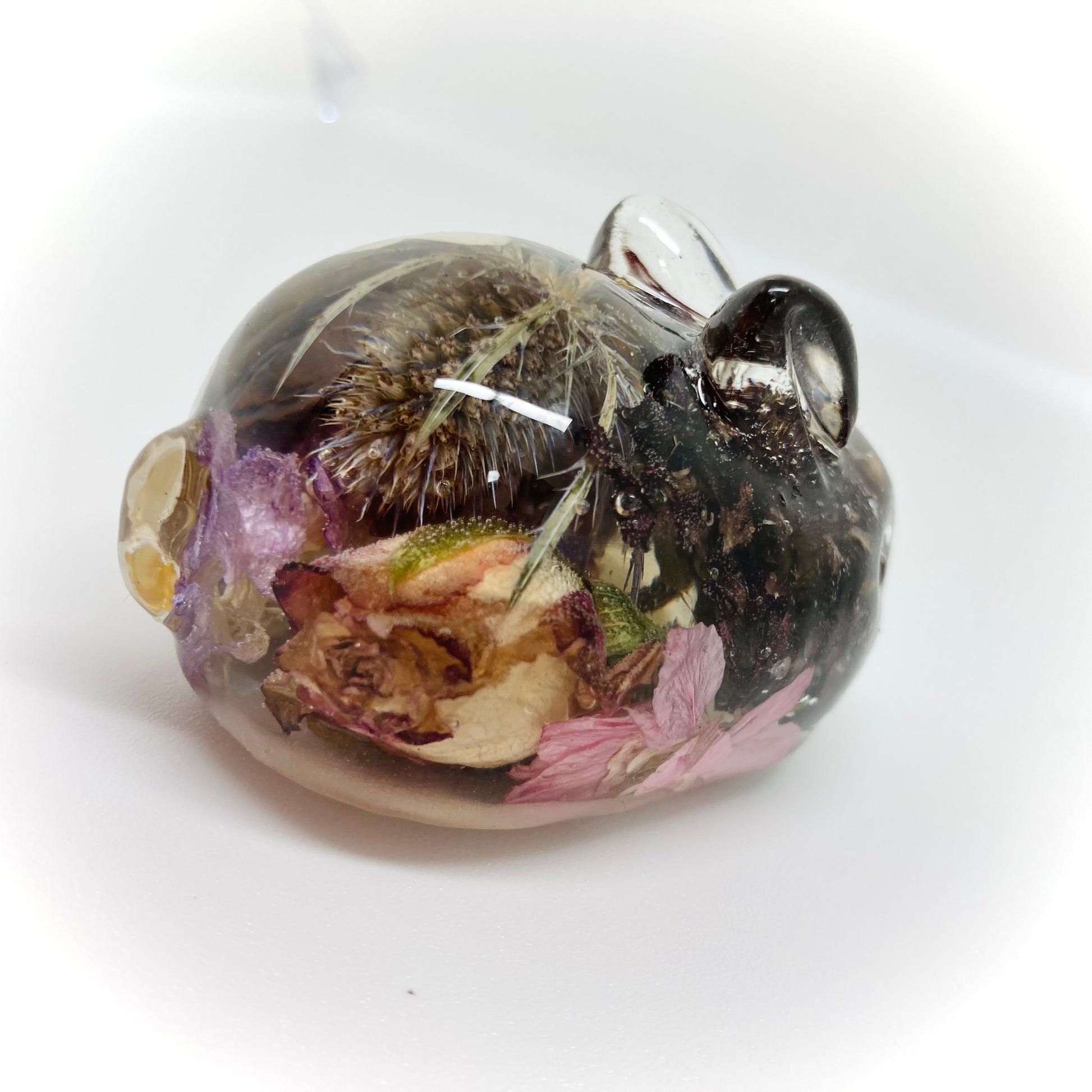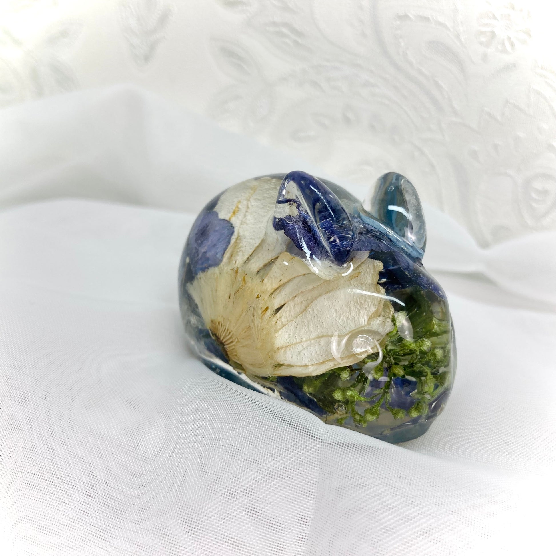 A beautiful rabbit decoration to contain your own preserved funeral or wedding flowers.