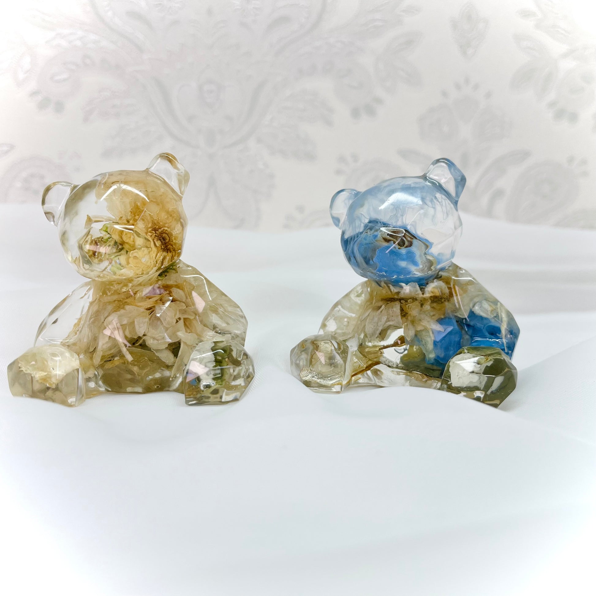 A beautiful faceted bear decoration to contain your own preserved funeral or wedding flowers.