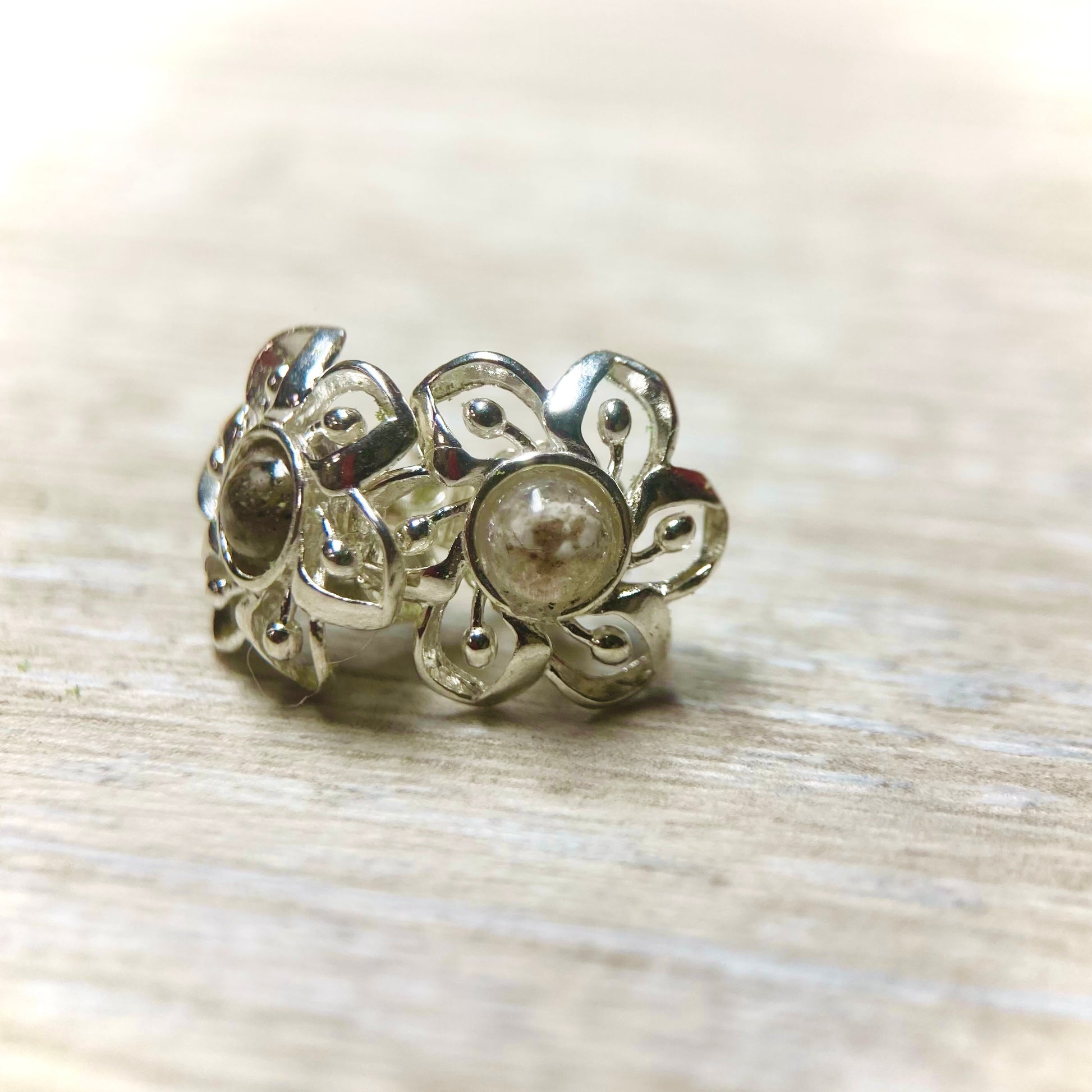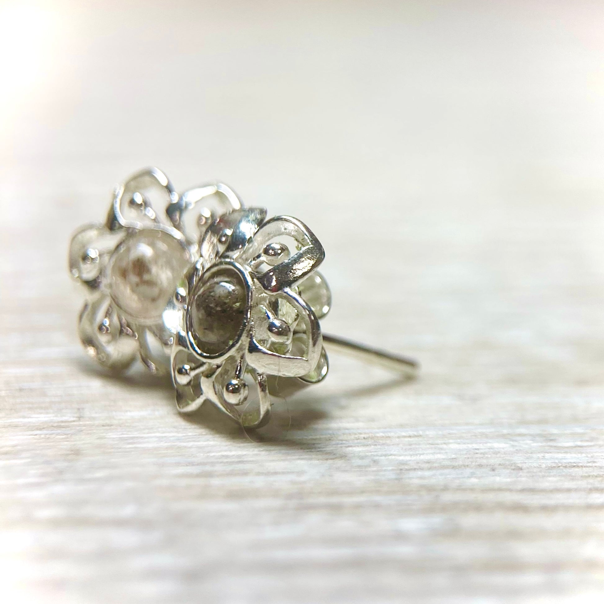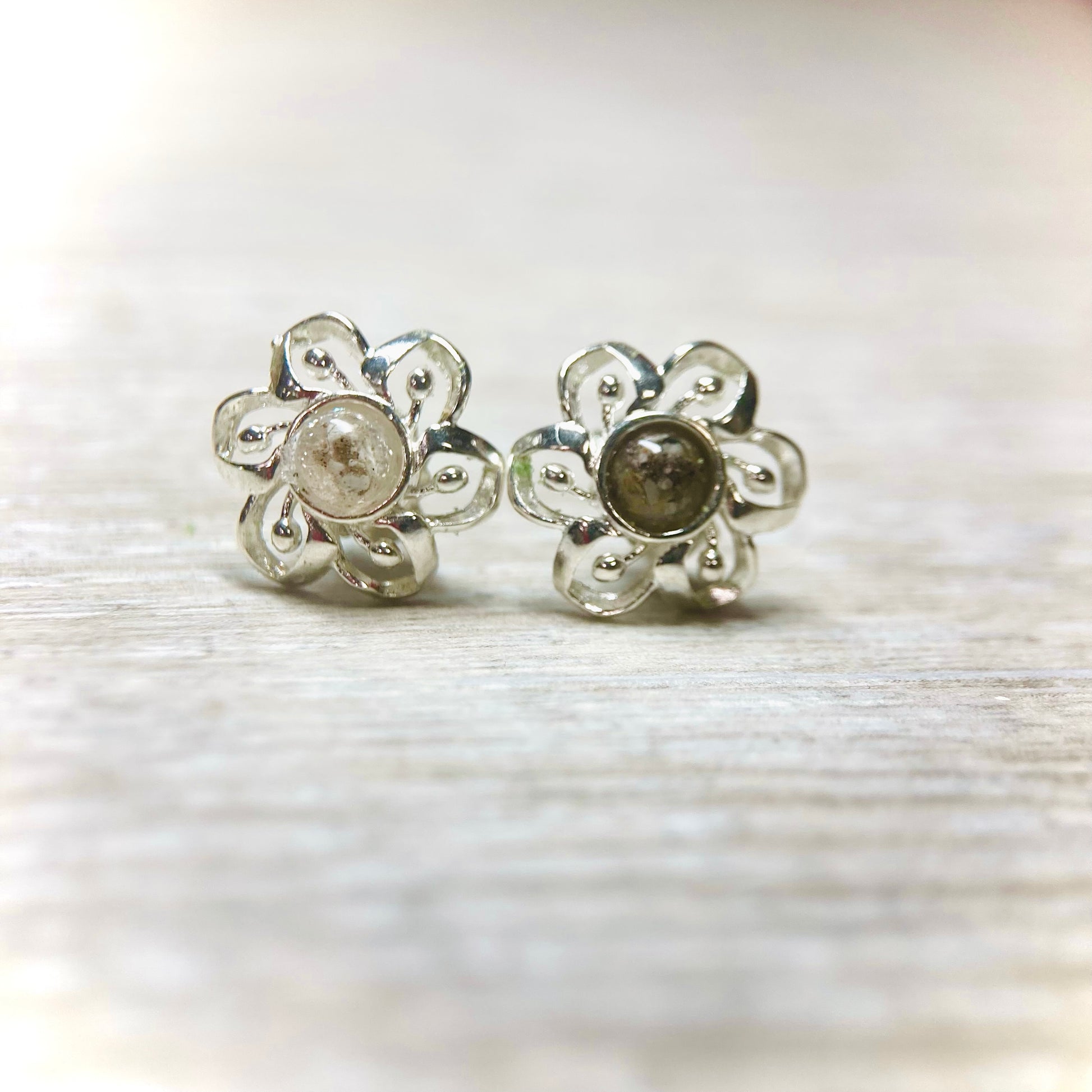 A pair of stunning flower shaped stud earrings which hold a 4mm resin stone 20x8mm to contain your loved ones ashes.