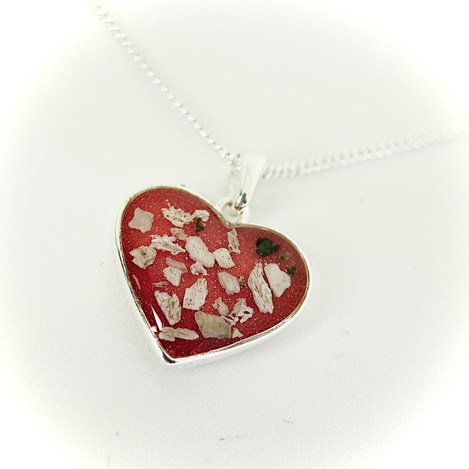A stunning heart shaped pendant and necklace with the heart approximately 15x13mm, this heart shaped “stone” is perfect to contain your loved ones ashes.