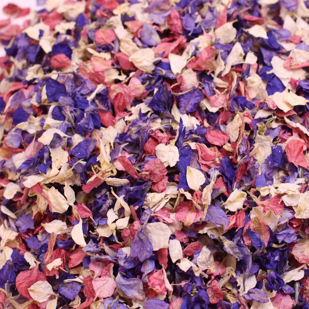 Embrace the wonder and allure of nature's palette with our natural handpicked mixed colour Delphinium petal confetti. Enliven your special moments with its authentic beauty and create an atmosphere that lingers in your heart forever. Explore our captivating colour mixes and let your imagination run wild! ๐ท