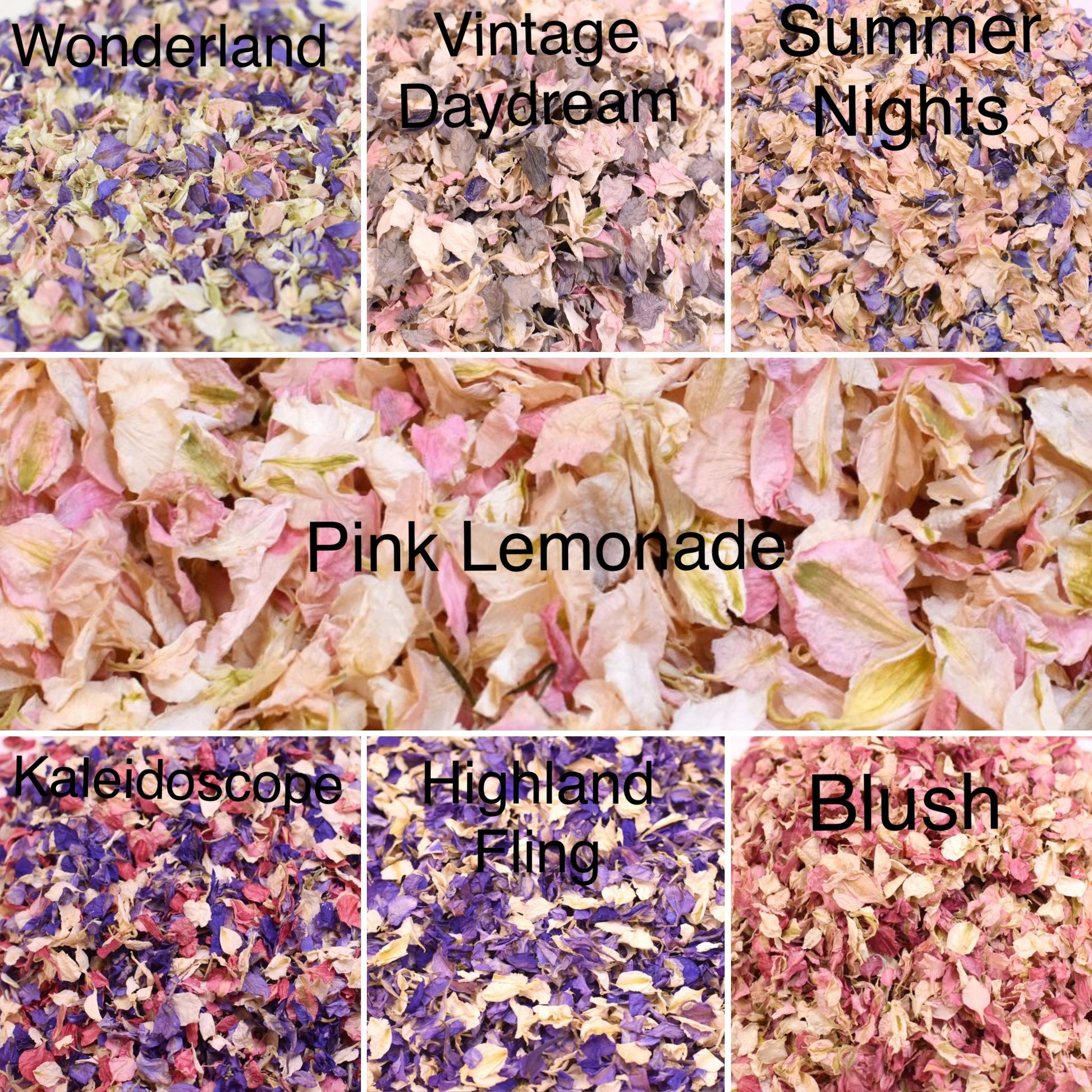 ๐ Mix and Match Your Perfect Confetti ๐ Unleash your imagination and create the confetti of your dreams by blending different petal colors. With our delightful colour mixes, including Wonderland, Vintage Daydream, Summer Nights, Pink Lemonade, Kaleidoscope, Highland Fling, and Blush, you can curate confetti that embodies your desired ambiance.