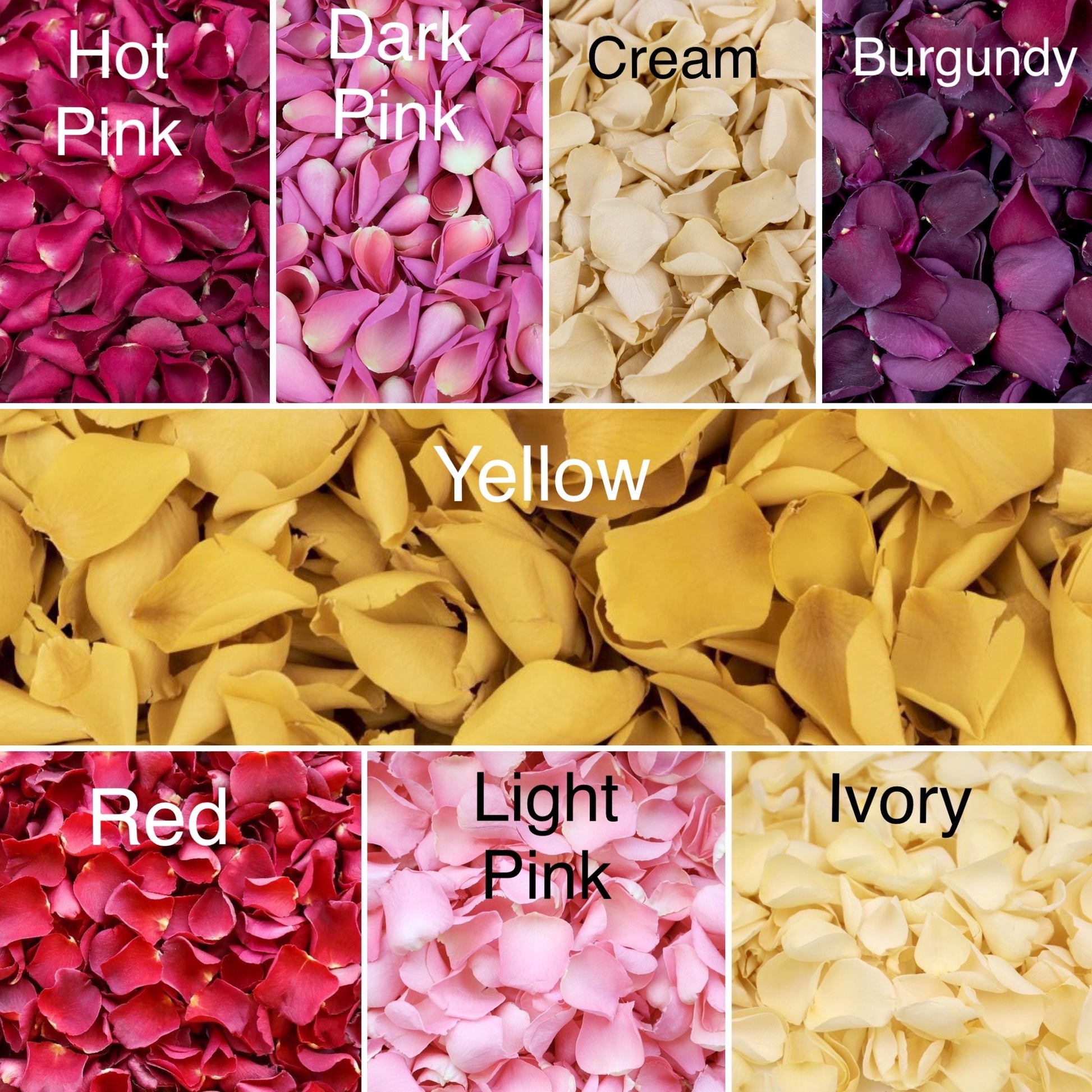 Mix and Match to Your Heart's Content: Craft your own unique blend of romance by mixing and matching different colors and flower confetti varieties. Our range of stunning colors includes hot pink, dark pink, cream, burgundy, yellow, red, light pink, and Ivory, giving you the freedom to personalize your confetti to perfectly complement your wedding day theme.