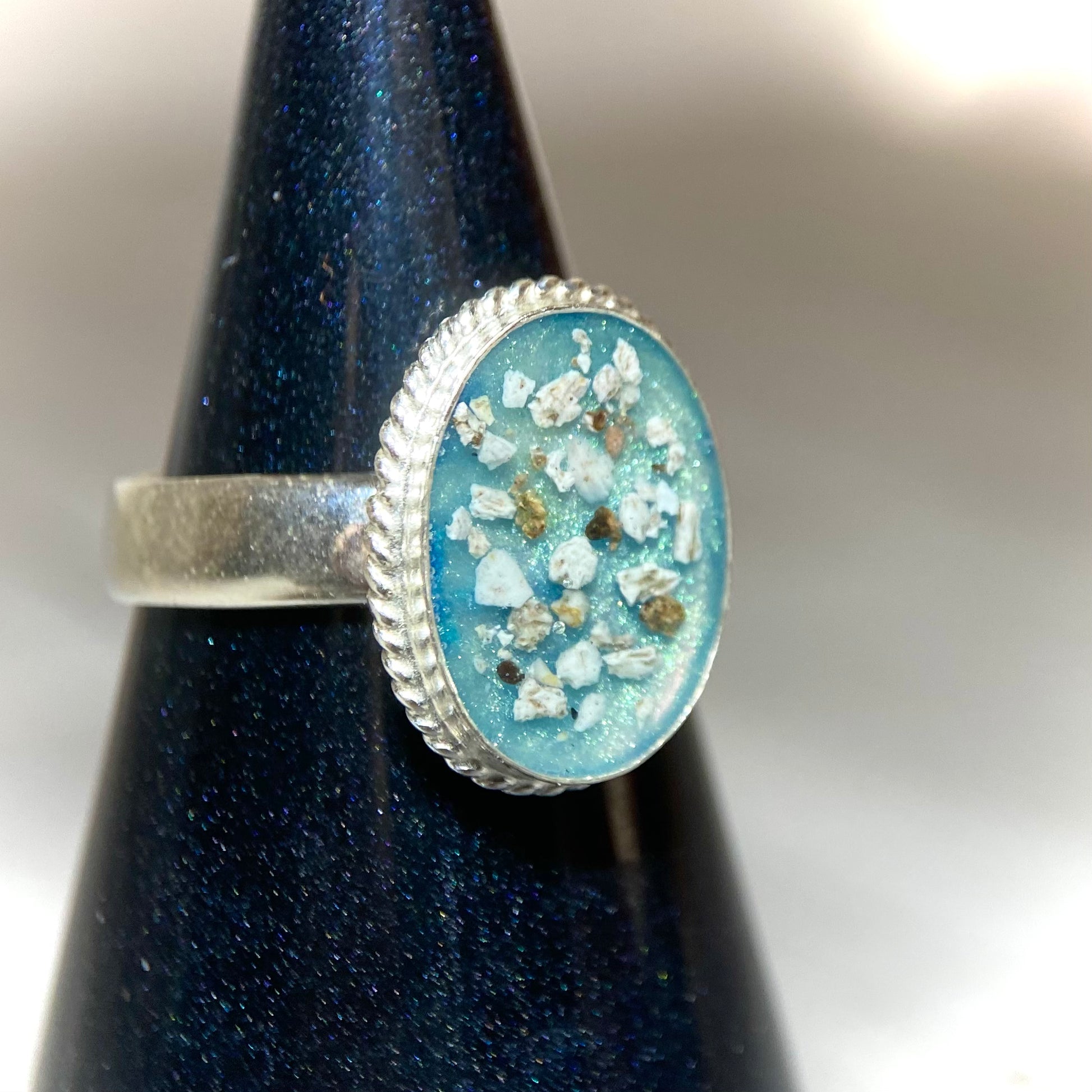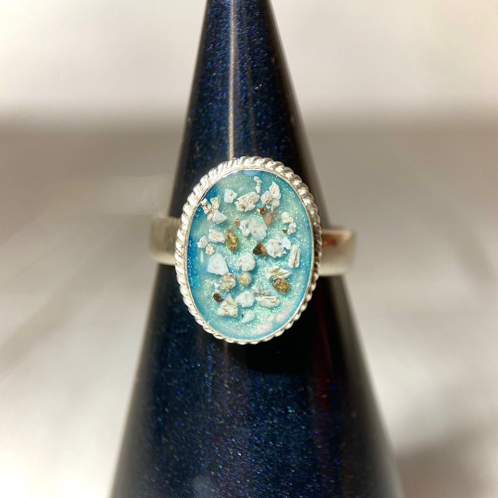 A stunning rope ring to display your loved ones cremation ashes.