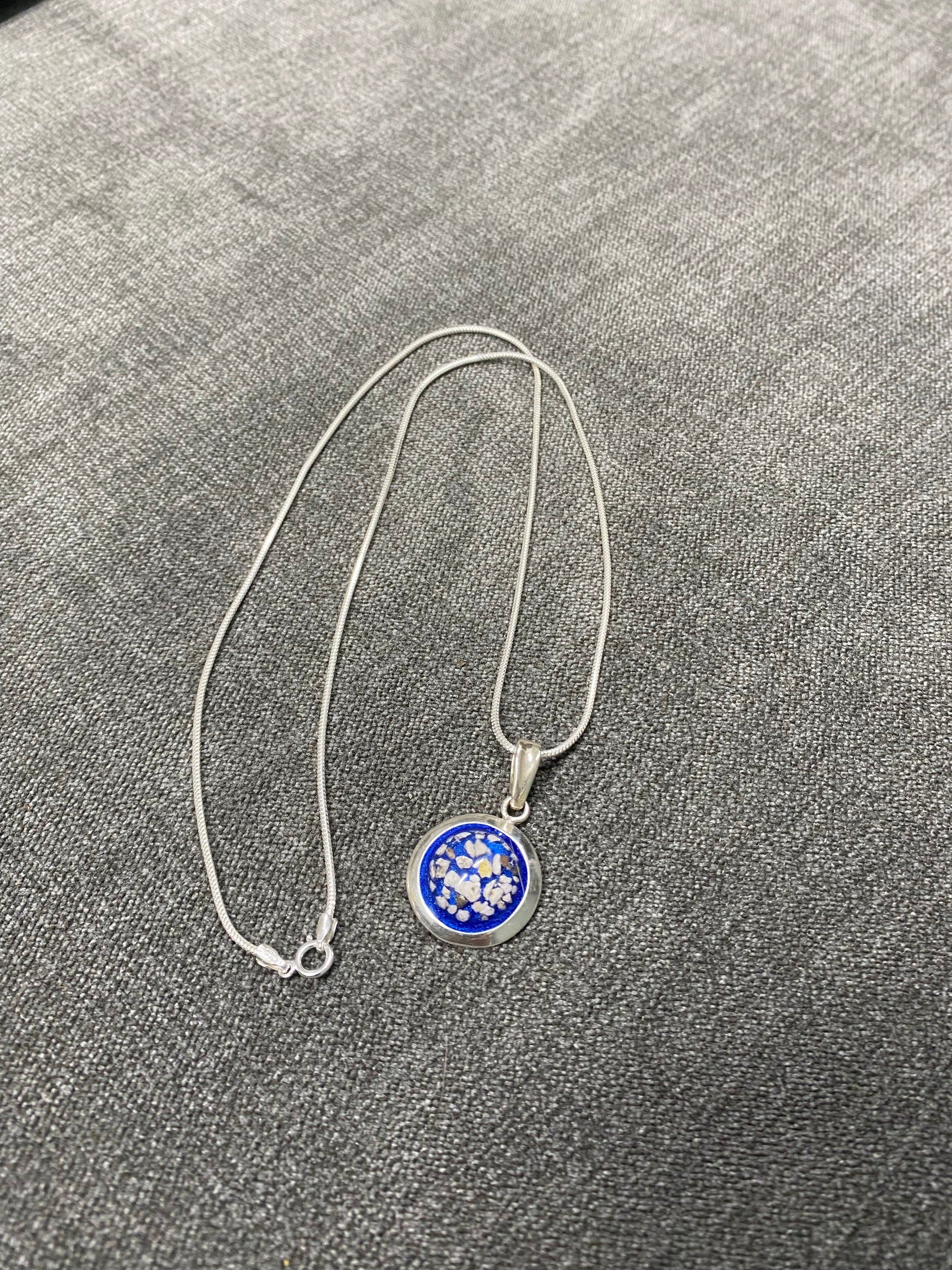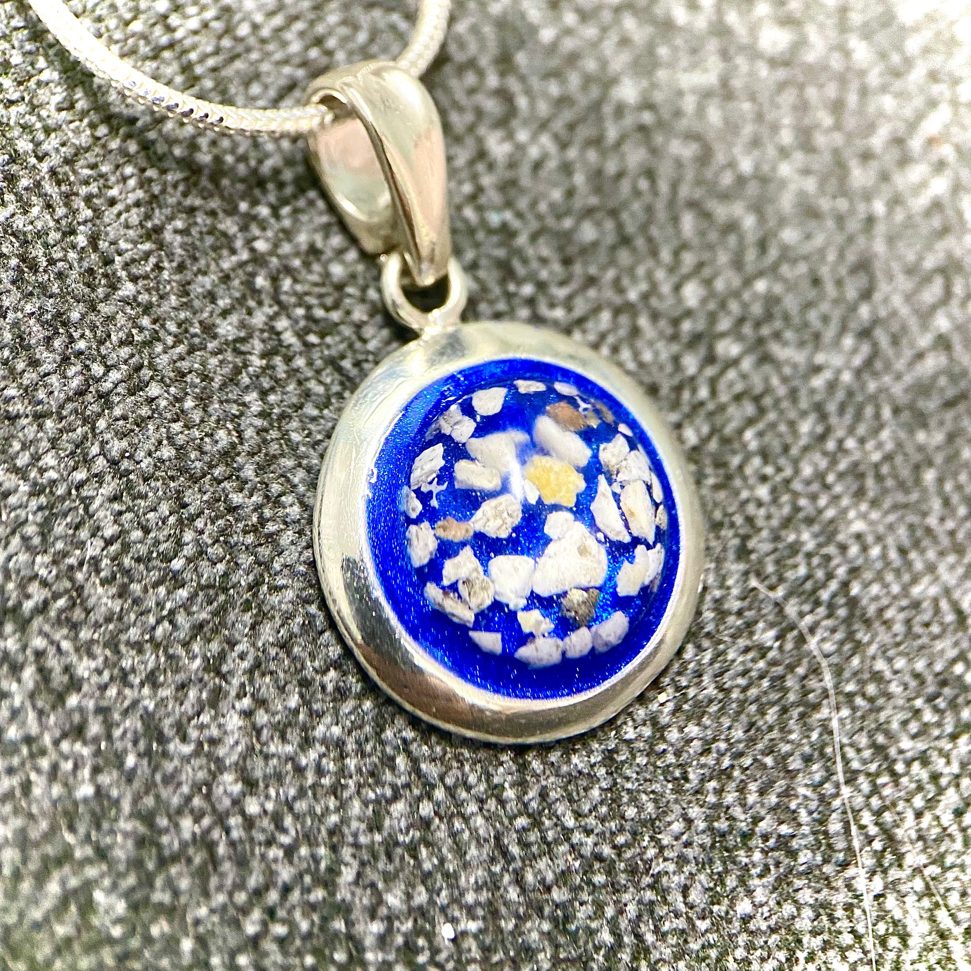 A stunning round 19mm pendant and necklace with a 15mm “stone” to contain your loved ones ashes.