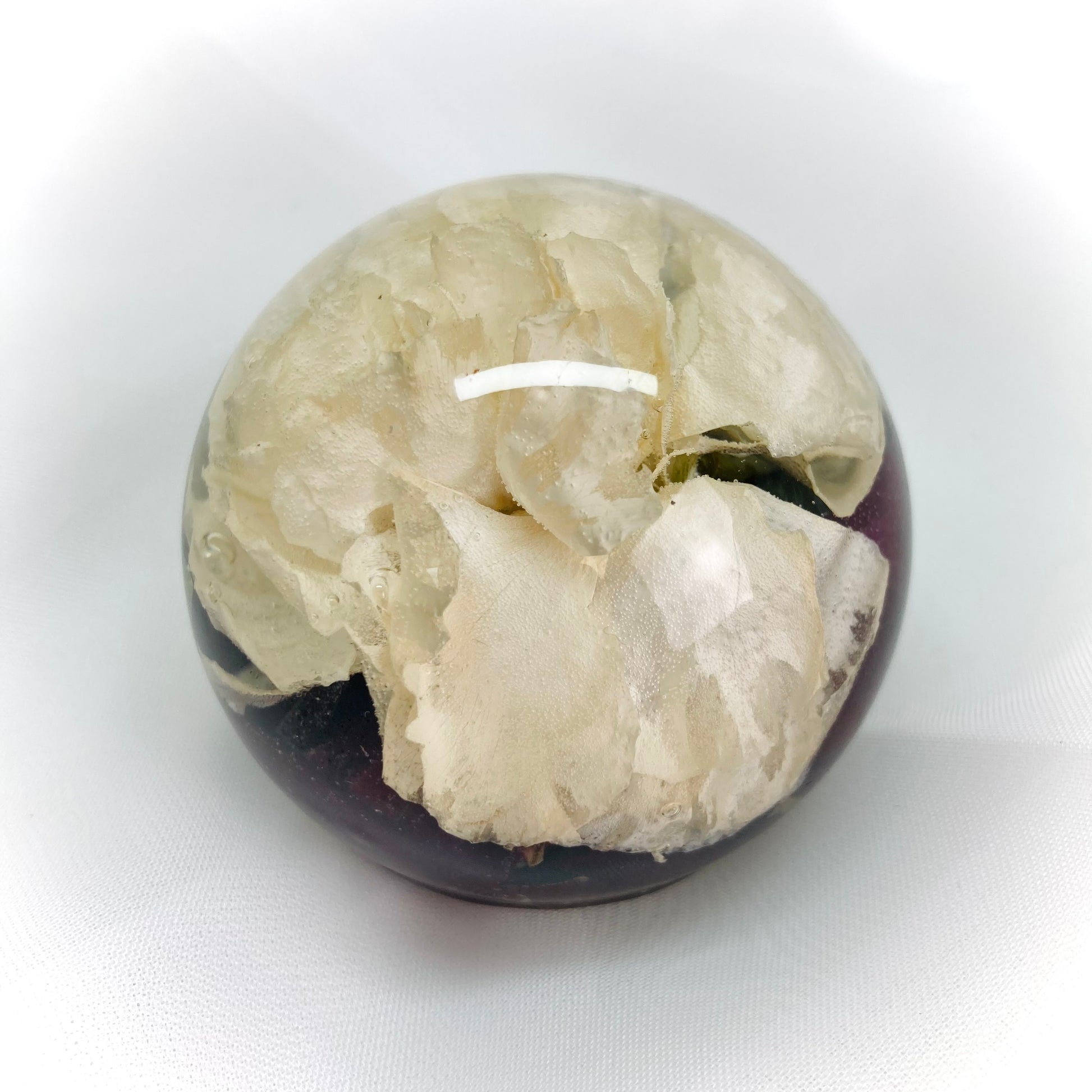 A beautiful 6cm flat bottom sphere containing your own preserved funeral or wedding flowers.